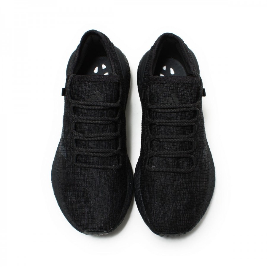 Dieses Release verfügt über ein volles Schwarz-Strickoberteil gepaart mit einer passenden Schwarz-geformten Fersenkappe und einer schwarzen Boost-Zwischensohle. Abgerundet wird das Design durch einen helleren Farbton an den drei Streifen an den Seiten.