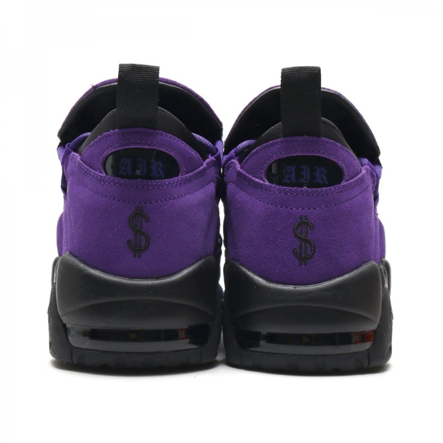 Cette itération de la Nike Air More Money est construite dans une tige en daim premium entièrement recouvert de Lila. Schwarz détaillant tout au long, un signe dollar sur les langues et des talons au sommet d'une semelle intercalaire tricolore complète le design.