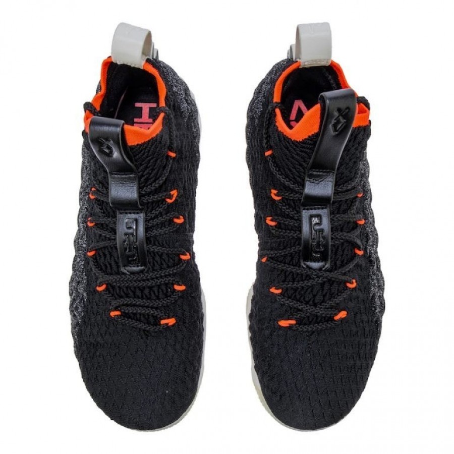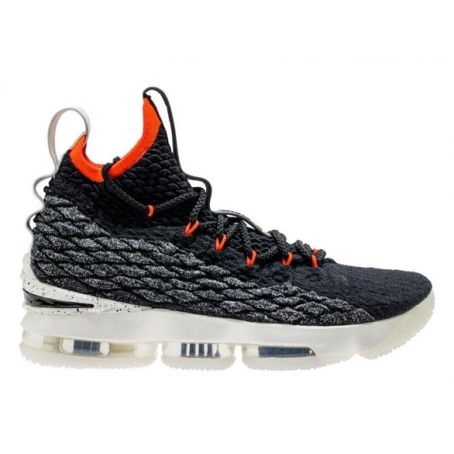 Habillé d'un jeu de couleurs Schwarz, Beige et Orange. Cette Nike LeBron 15 dispose d'une combinaison de Schwarz et Grau tout au long de sa partie supérieure contractée BattleKnit. Une tirette avant en cuir Schwarz, une patte de talon arrière beige et une semelle intercalaire complétée d'accents d'orange. Une semelle extérieure translucide claire complétant le design.